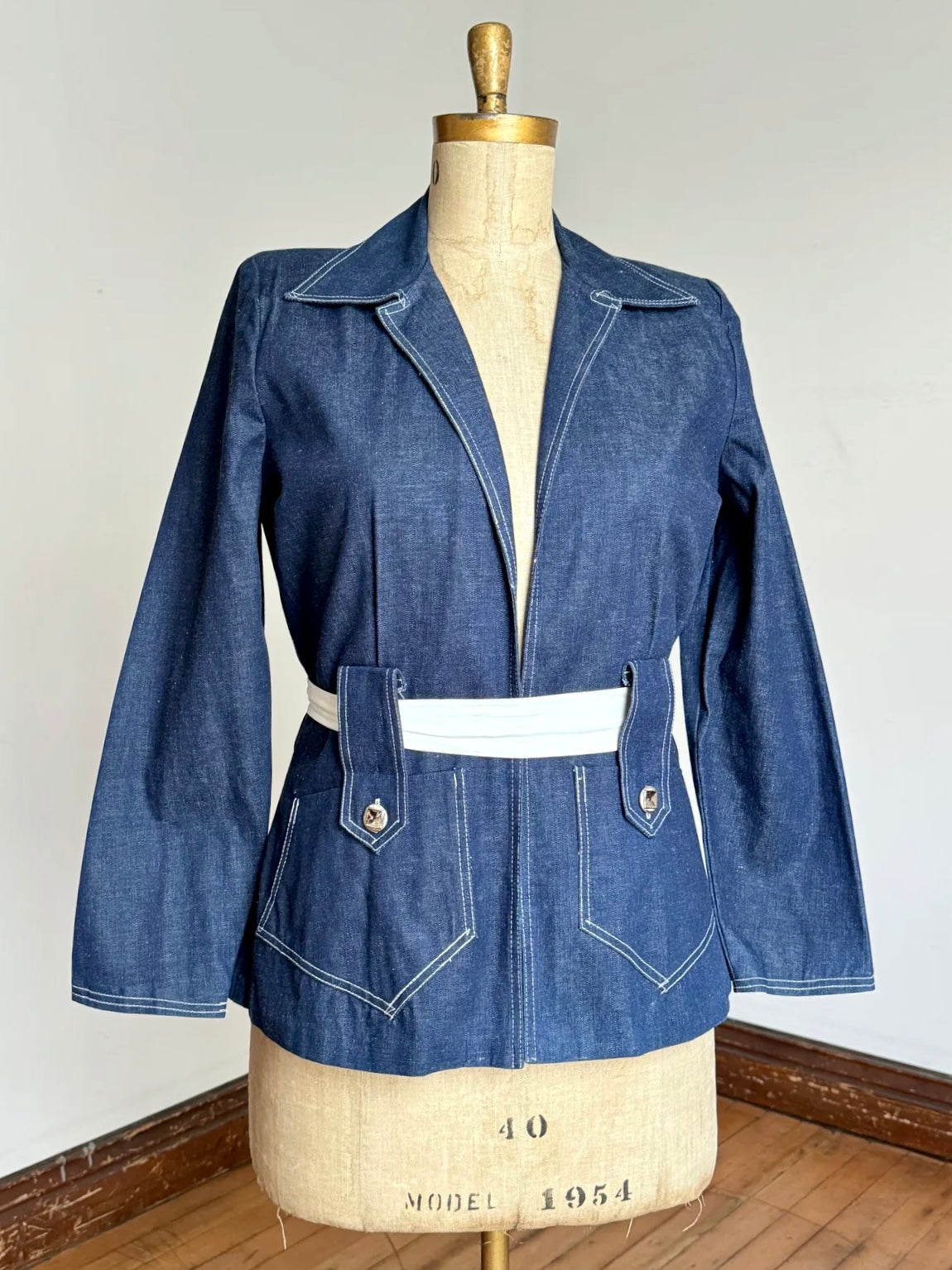 Really hard to find EARLY 1950s denim jacket! It's so crispy I think it's deadstock honestly!!! So in my research I was able to find that this brand did a lot of women's denim and sportswear. Almost everything was available in a few variations (like shorts, jackets, etc all in the same set pattern). Most jacket would have a cropped and short swing version. I was able to find the ads for the short cropped version of this one from about 1950-1953! Sadly none of them showed this variation but I'm pretty certain it was part of that collection specifically. Anyways it's wonderful and can be worn open front or with a belt (belt is NOT included). There are slight shoulder pads.