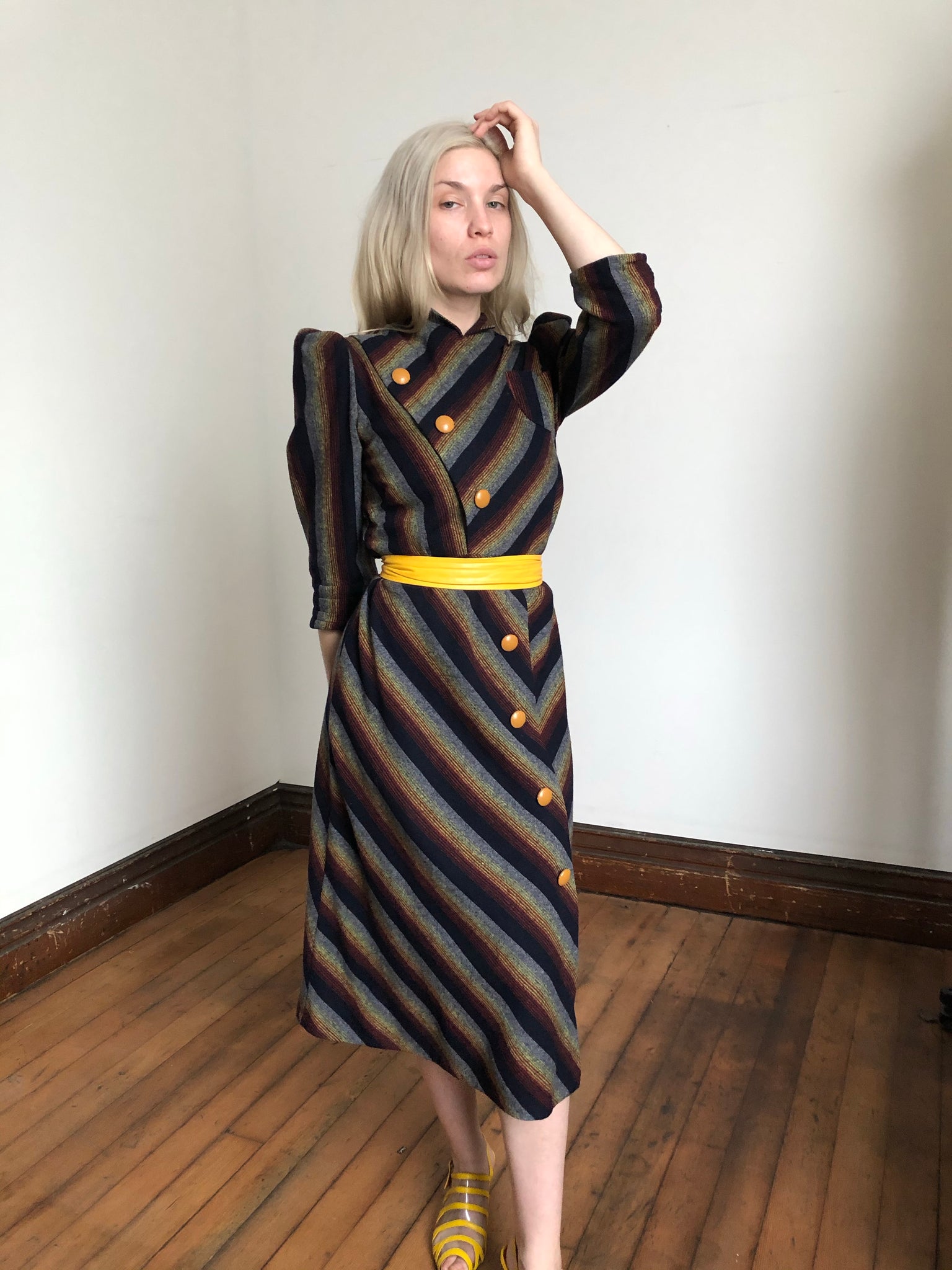 vintage 1930s striped wool dress {s}