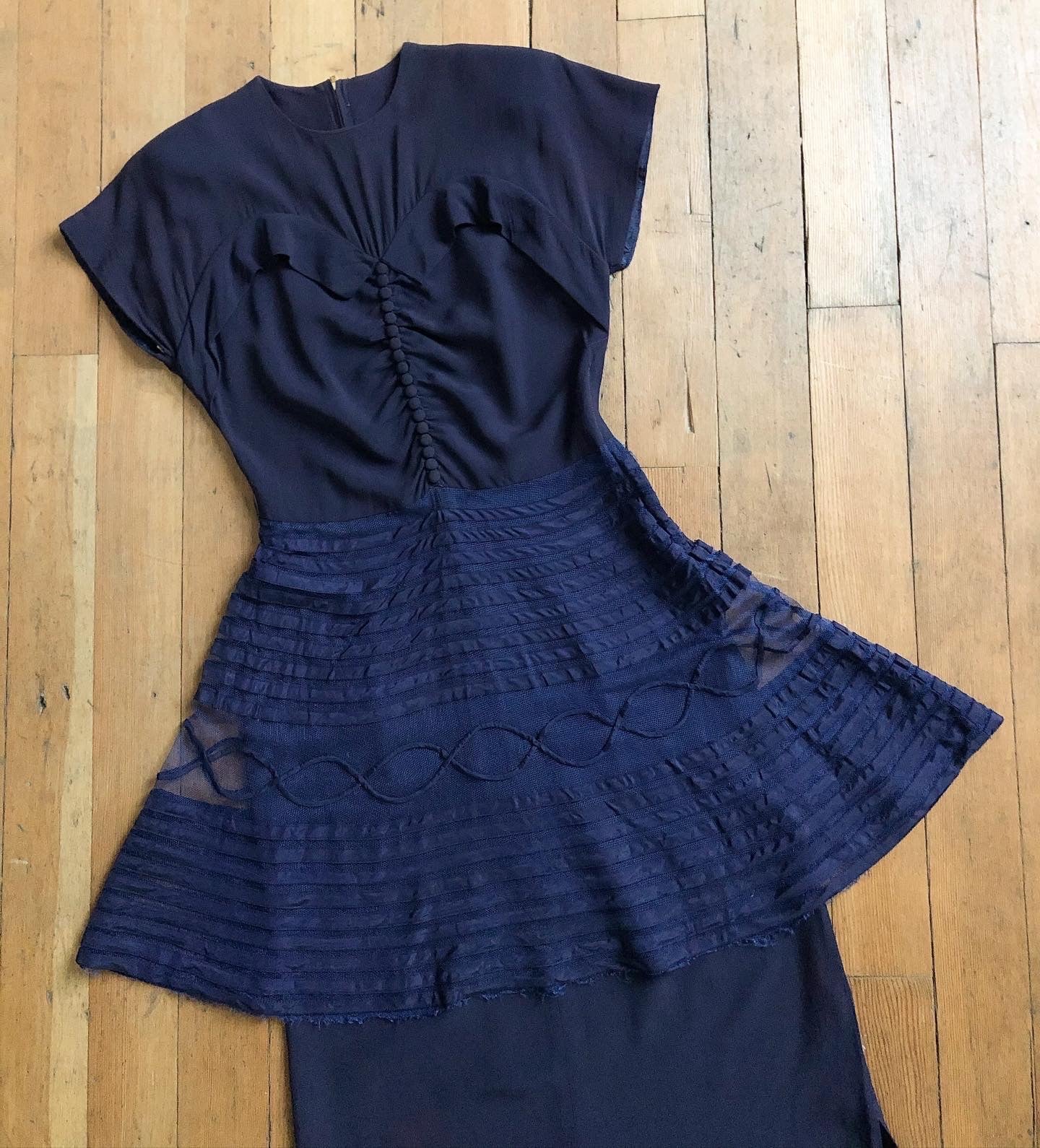 vintage 1940s navy peplum dress