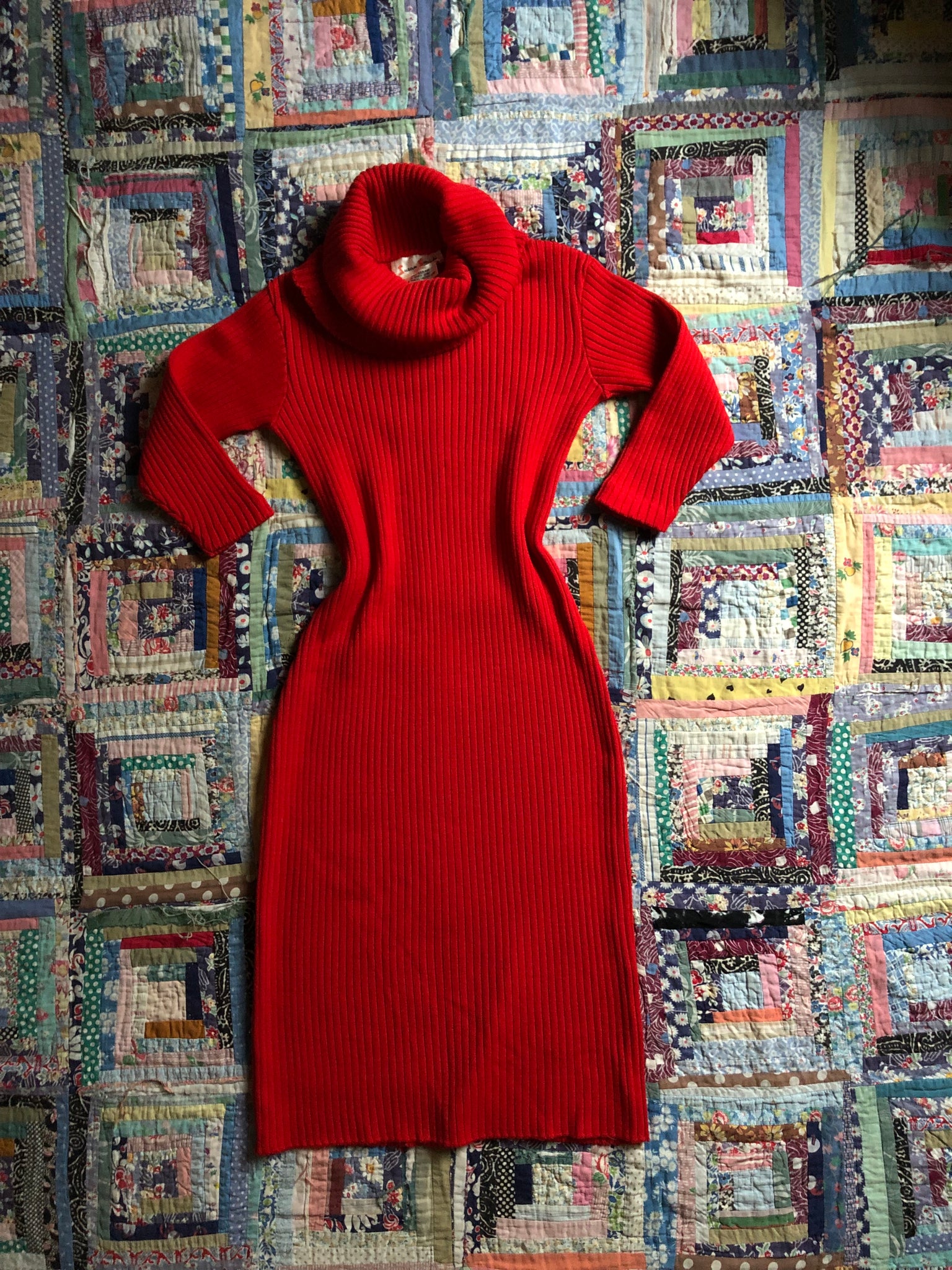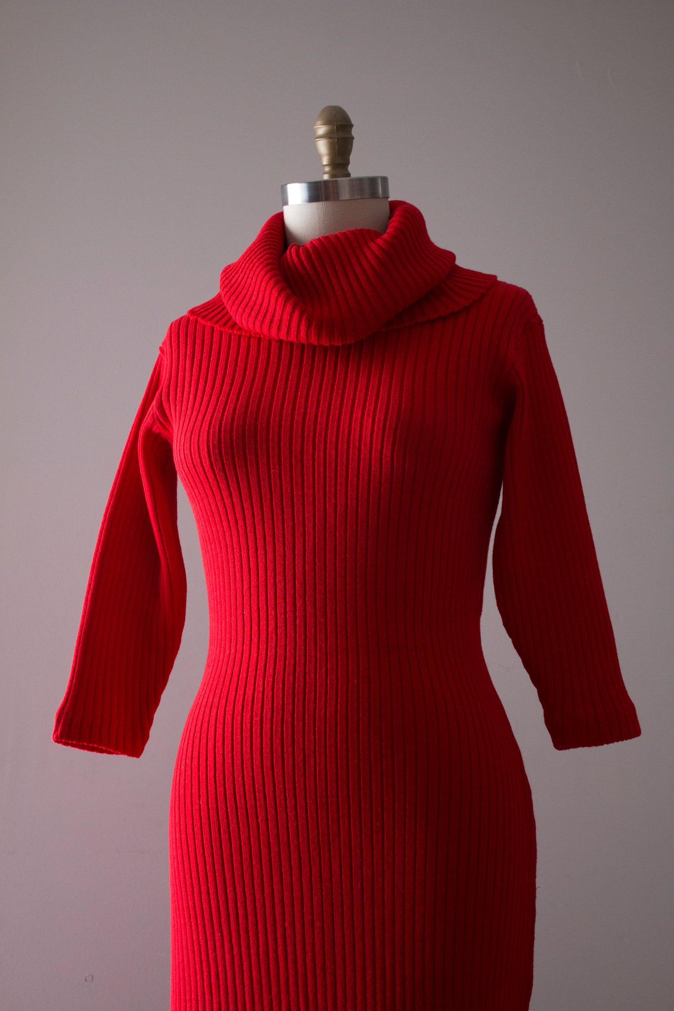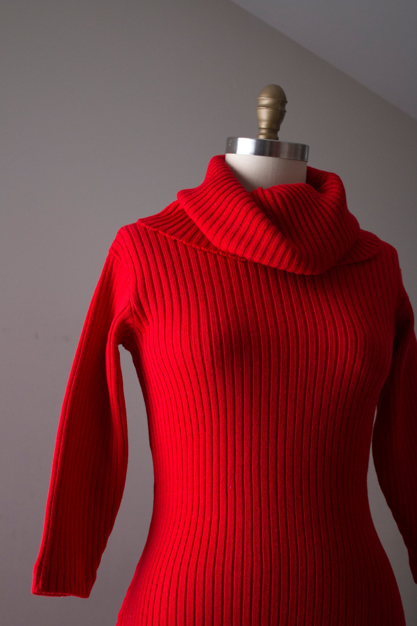 RARE and seriously INCREDIBLE red knit dress by designer Susan Small from the 1950s. This dress features a bombshell silhouette - very flattering on with the most insane turtle neck detail imaginable!! Check out how oversized it is! There are so many different ways you can style it and set it. It's just SO GOOD!
