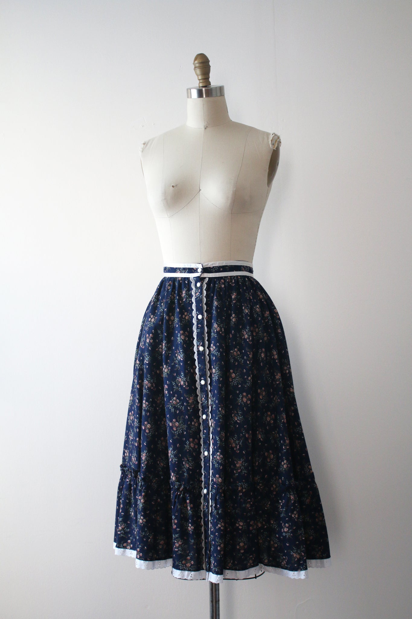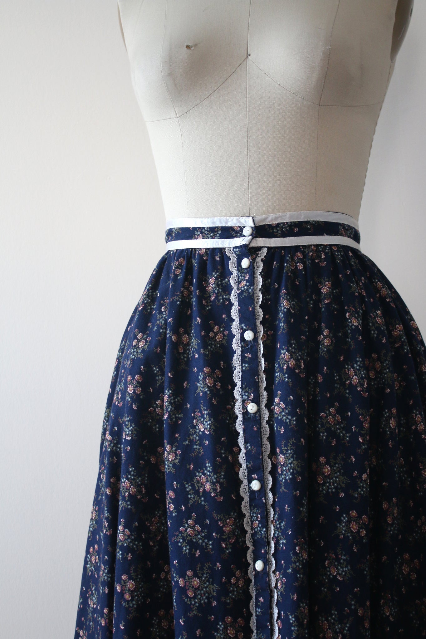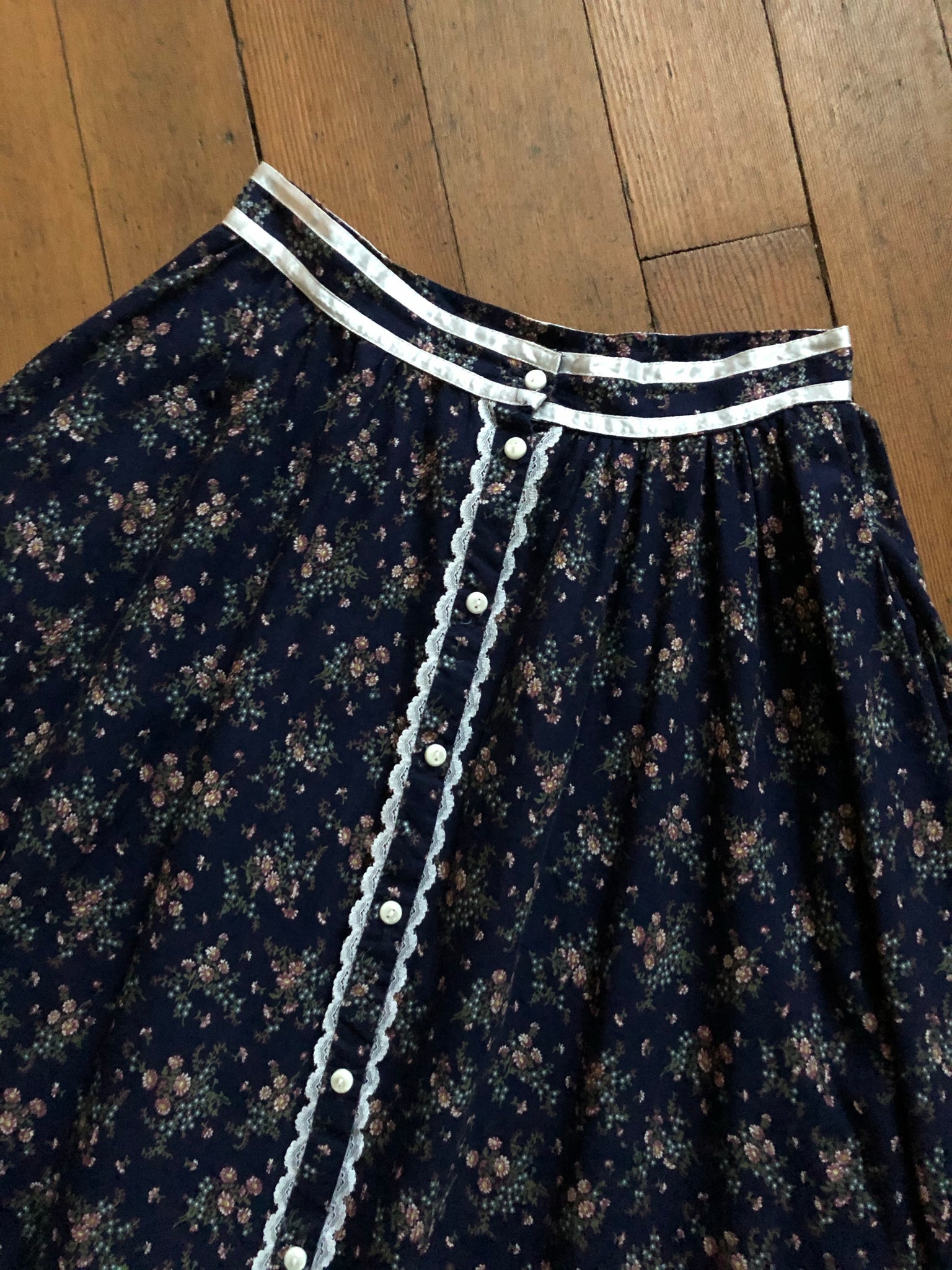 Gorgeous tiny floral prairie skirt from the 1970s. Button up front.