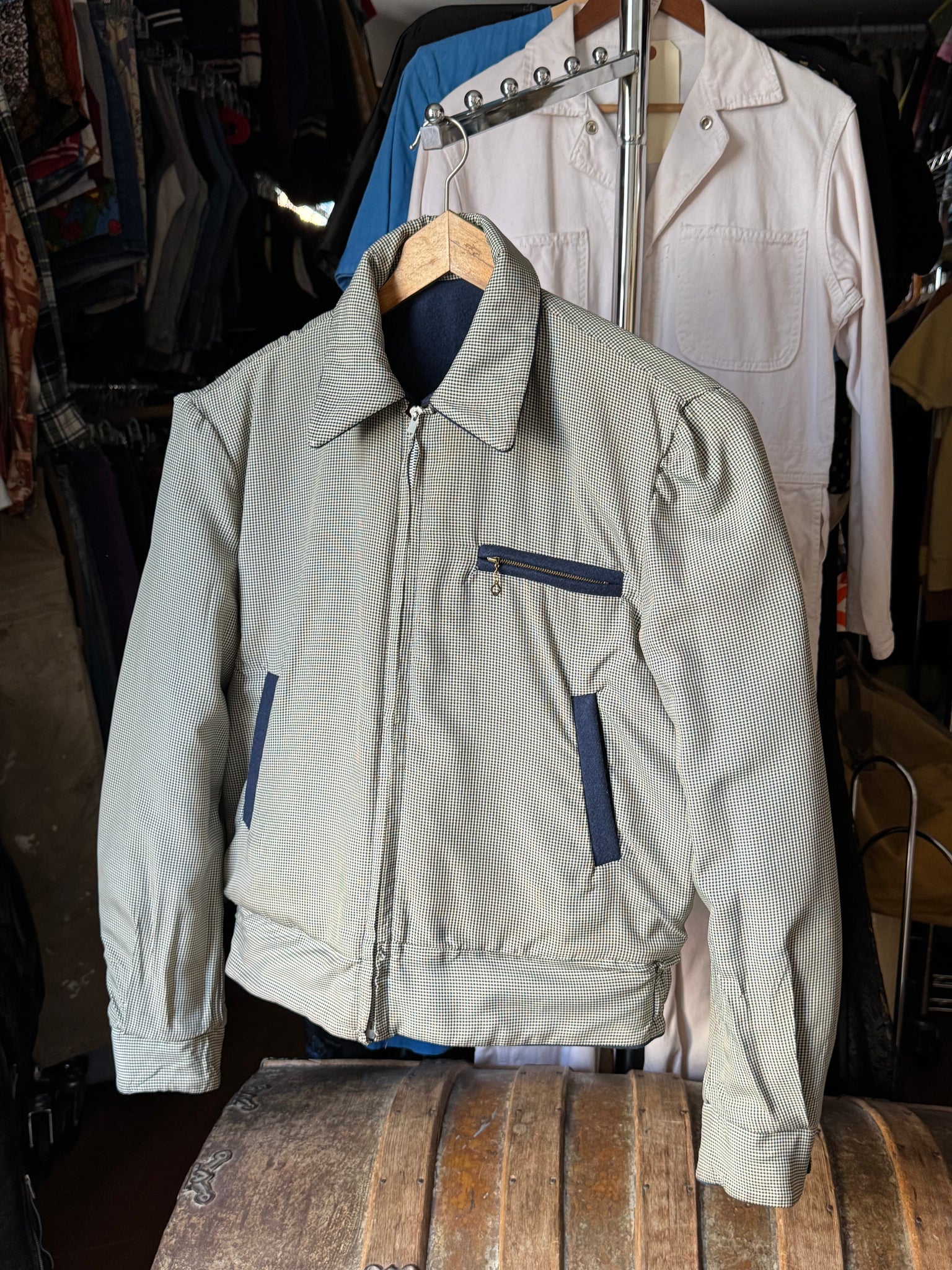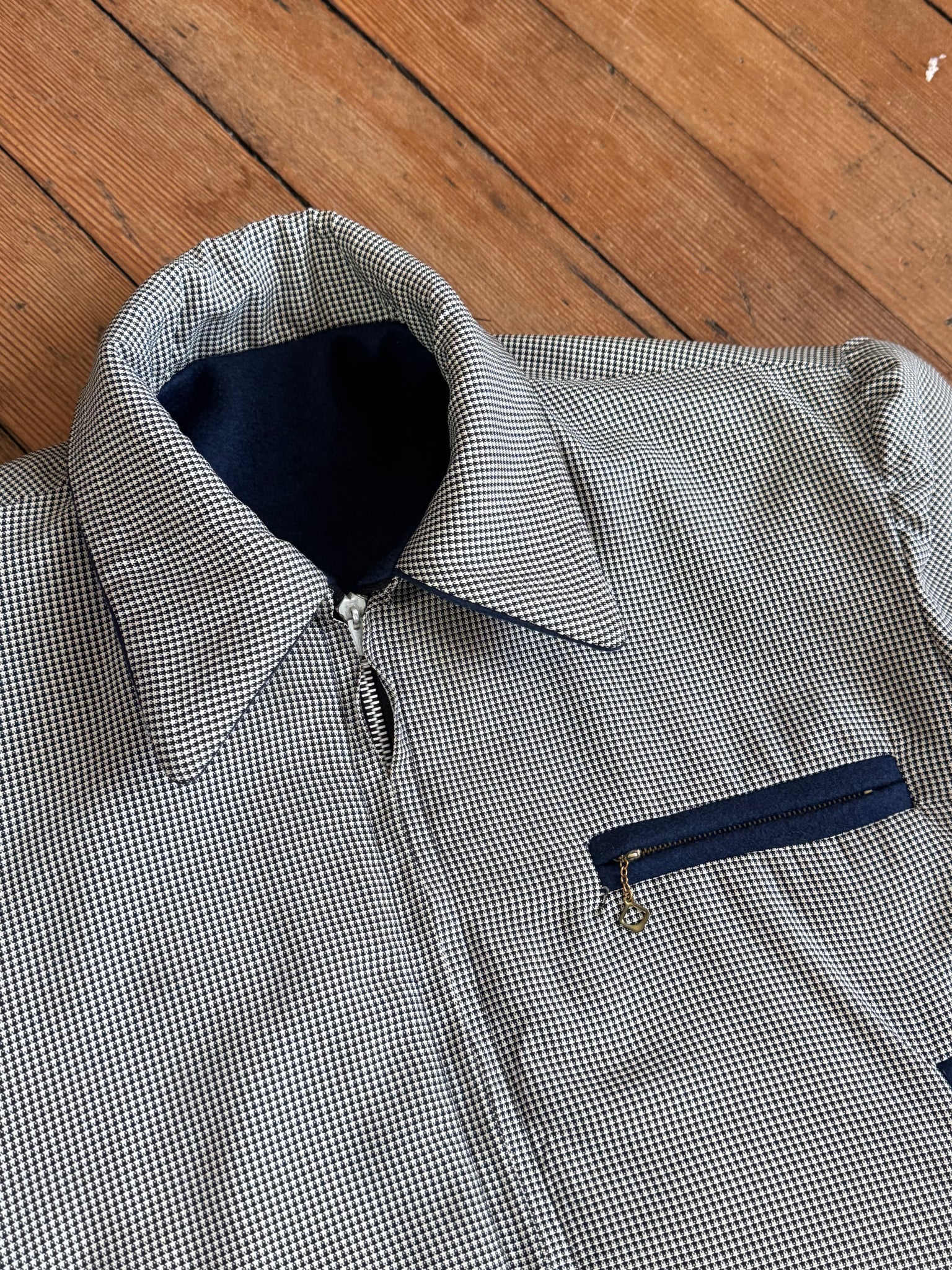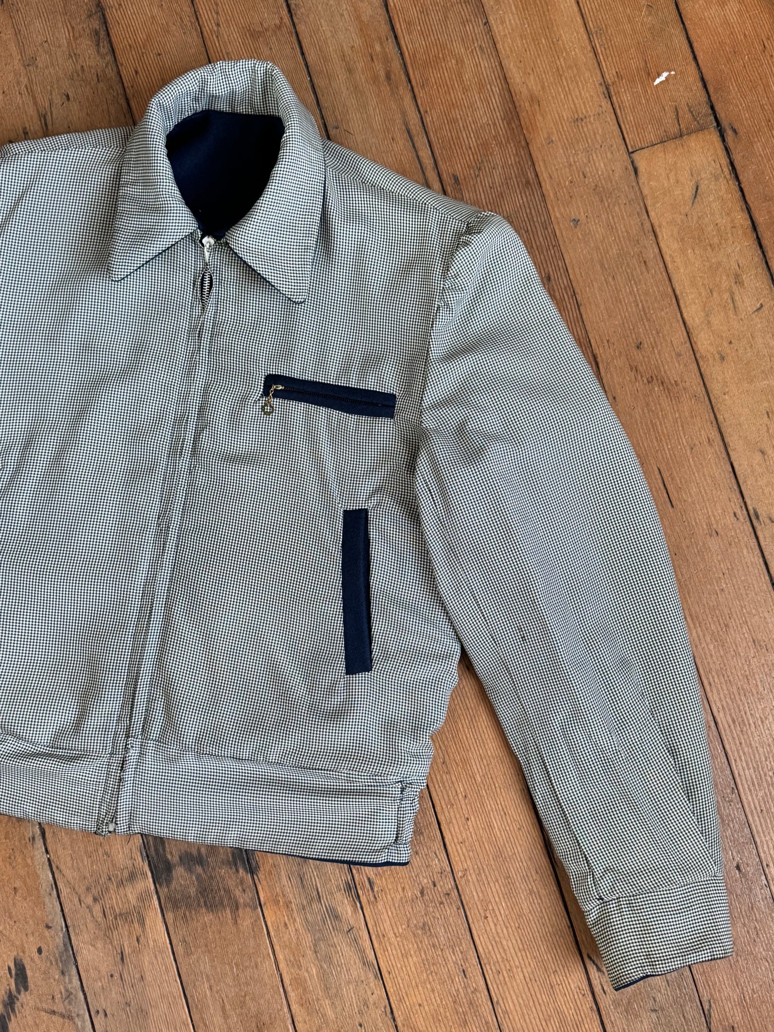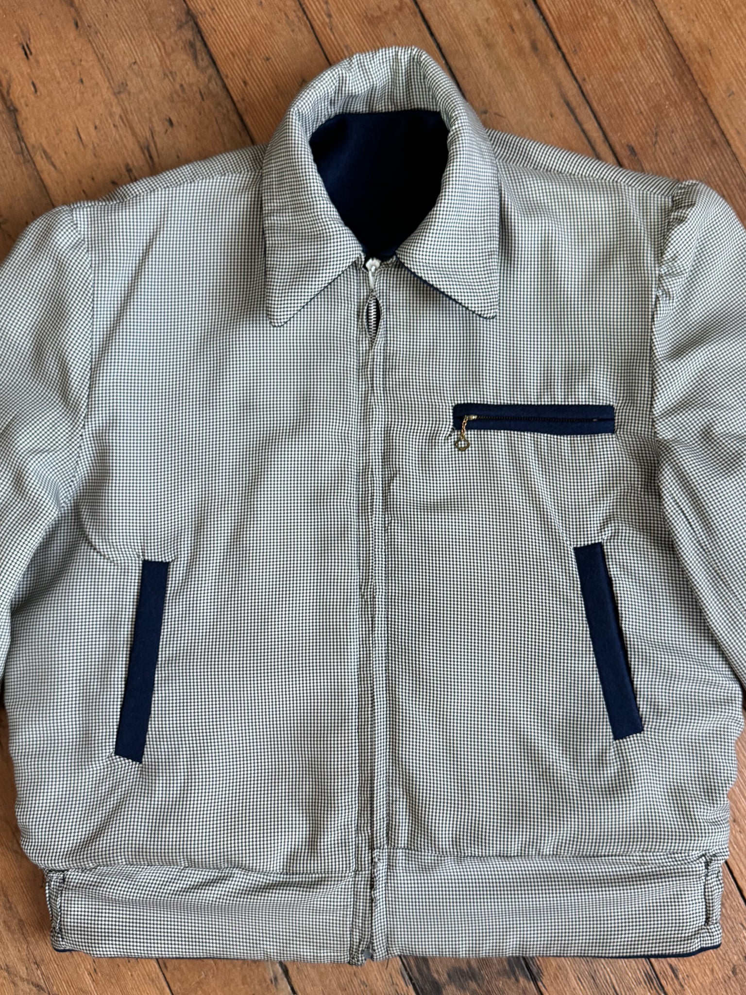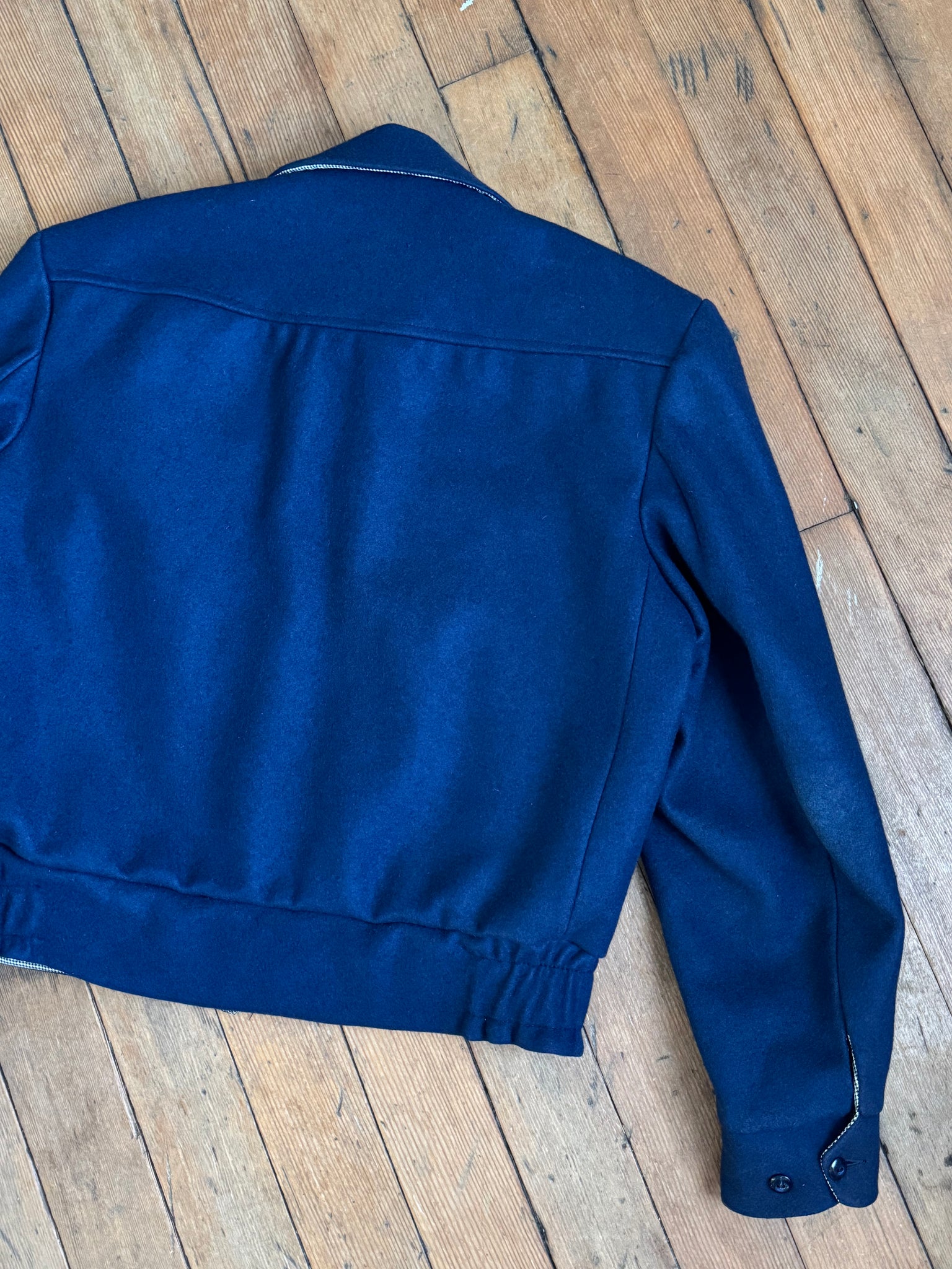 Really incredible 1950s navy blue wool cropped Ricky style jacket that is REVERSIBLE!